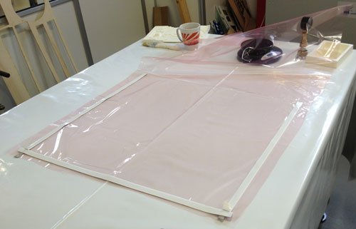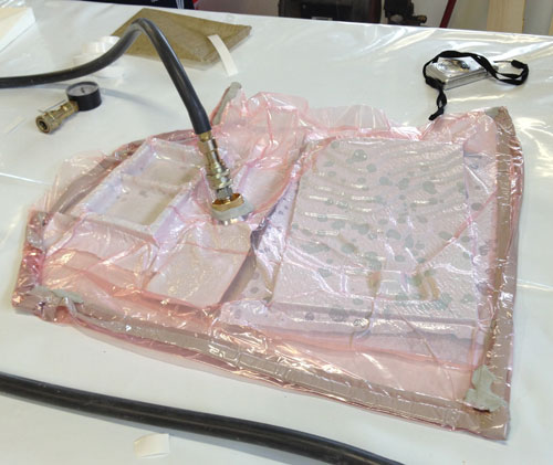 I vacuum bagging my piece along with the piece of one of my classmates.