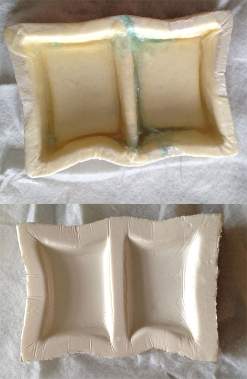 After curing for 24 hours I opened the bag and unmold the piece. Here we can see the final deformation of the mould, not only on the sides but also at the bottom.