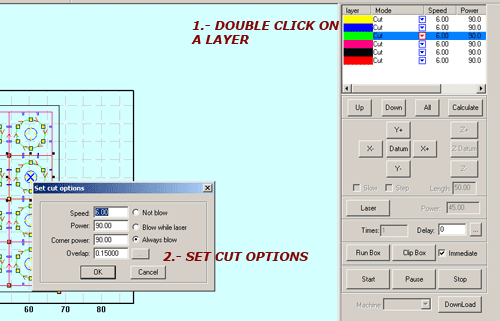 1.- To up or down the layers in relation to the order than the laser should cut all of them.