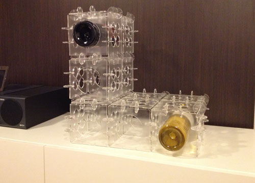 The desing have 3 different square pieces, one for the body of the bottle, one for the neck of the bottle and one for the laterals, top and botton and one circle piece for the unions.