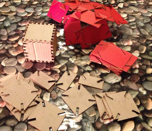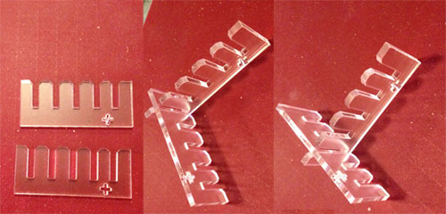 Finally I made some Slide-Together Structures with a rigid material (2,5 mm thick DMF), like the ones from Rinus Roelofs: Slide-Together Structures.