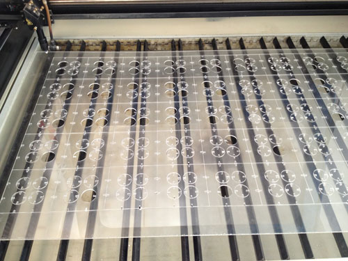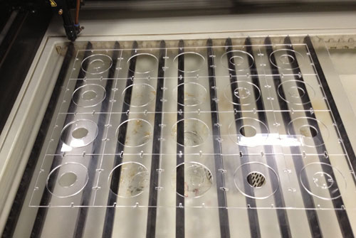 Then, I adjusted the notch width in the Inkscape files, I made the pattern using Edit/Clone/Create Tiled Clones and export then as DXF. Finally, I imported then into LaserCut 5.3 to send then to the Laser machine.