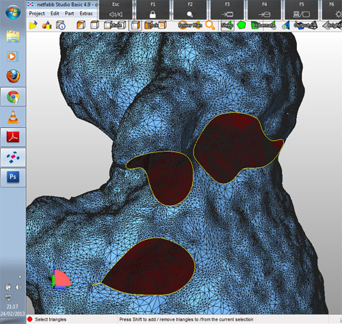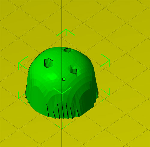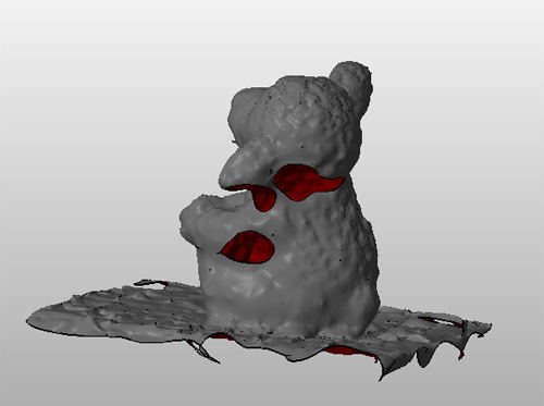First, I used Netfabb to clean the junk around the object, slice off the bottom to create a flat surface and repair the holes in the mesh with the automatic repair tool.