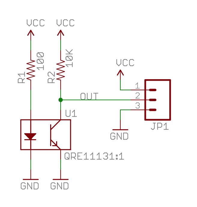 The next solution I tried was infrared reflective sensing. Technique popular in hobby robotics for measuring the position of a robot's wheel or for line follower robots. For this I used QRE1113 IR reflective sensor.