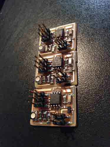Having somewhat limited access to the machinery (I live 5 hours drive from the FabLab), I decided this week to just practice milling and stuffing the boards. I made three RGB led boards just in case I damage some. Collected all the components and took them home with me. Stuffing them in the comfort of home kitchen was actually much more productive than I expected. I was done in about an hour with all three boards. If there's anything I've already gained from this course - it's SMD soldering skills.