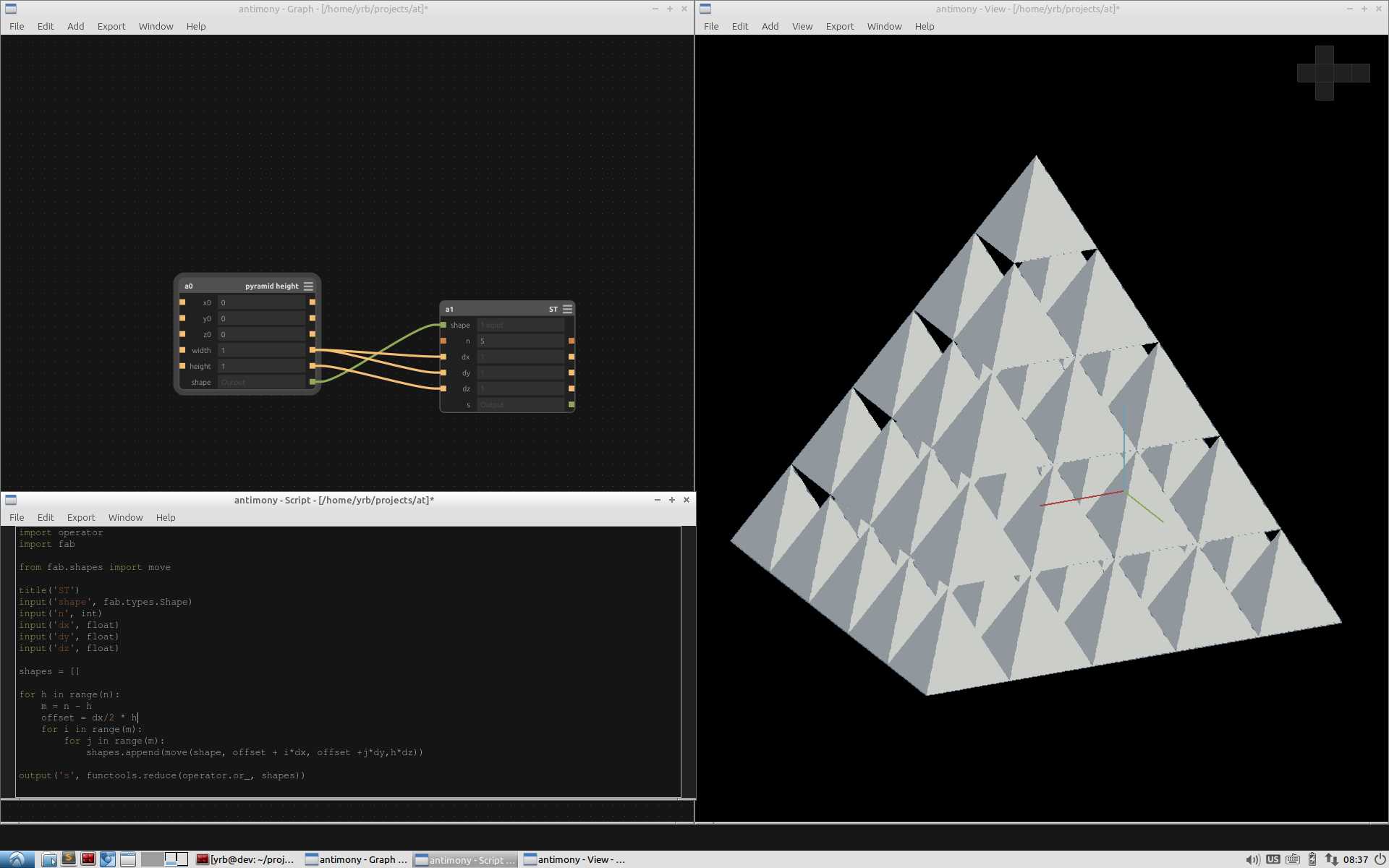 I am looking forward to seeing where Antimony goes, it feels a bit raw at this stage. Though I did encounter issues with crashing and segfaults. My favorite thing was watching the shapes converge. I think I might try and use it for doing the flat pack assignment.
