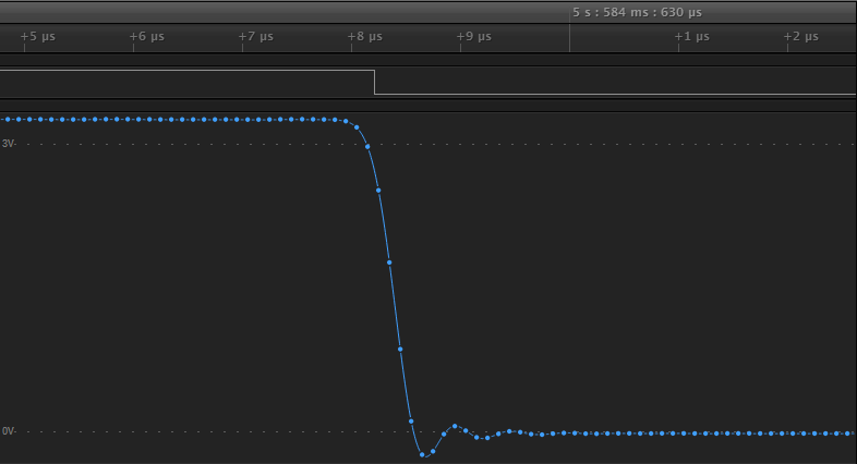I was supprised that the push button switch didn't need debouncing, but it seems there was enough capacitance to to stop it bouncing. Since the rise/fall time was aroud 700ns.