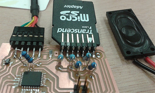 Add a speaker to last weeks’ board and use it to play sounds from the SD card.