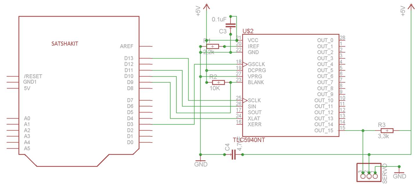 Obviously with a single board is not possible drive several servo/RgB Led. A solution is the use of a shift register like the Texas Instruments TLC5940.