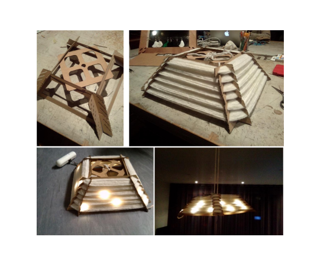 My profession has often to do with lamp shades. I always try to create this kind of devices in a different way. This time I applied laser cut cardboard.The design is made in INKSCAPE. Using the print option in INKSCAPE in order to activate the laser cutter was a real eye opener for me. Never thought operating a digital machine could be so easy.