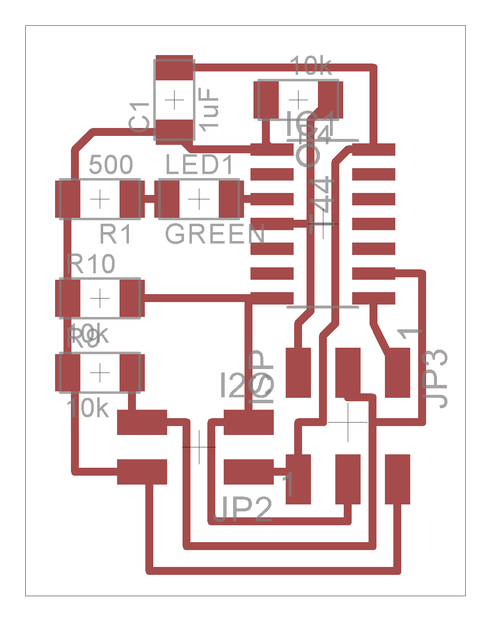 Designing the boards, routing the traces, milling and soldering are becoming a bit of routine, that was the easy part this week. For the programming I first read more on what I2C is, how it works and how to implement it on a ATtiny44. First thing I learned was that there are different names for I2C, for example IIC and TWI are also used for this kind of communication. Also, the terms slave and master are instead of node and bridge.