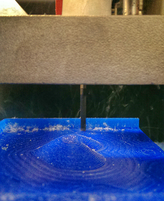This was easy to import into the fab modules as a png file. And from there I could cut a master model out of machinable wax on the Roland Modela using the built in Fab Module setting for "wax rough cut" and "wax finish cut" cut with the 1/8 inch bit. The was used was from machinablewax.com Part# 18-0150307 - blue 1.5" x 3" x 7"