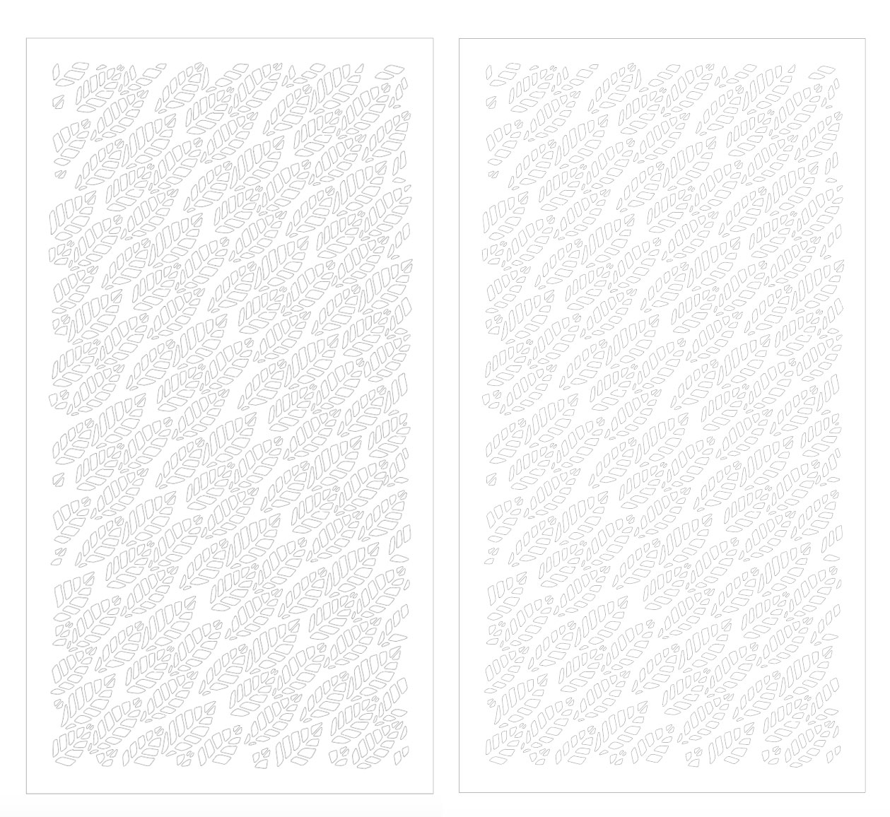 After the pattern was generated, I exported the file in .DXF format to bring it back into Illustrator and vary the scale of each of leaves, one at 80% and another at 70%. I'm going to have Naf decide which of the two patterns he likes and then laser cut that version onto a piece of 1/4" plywood.