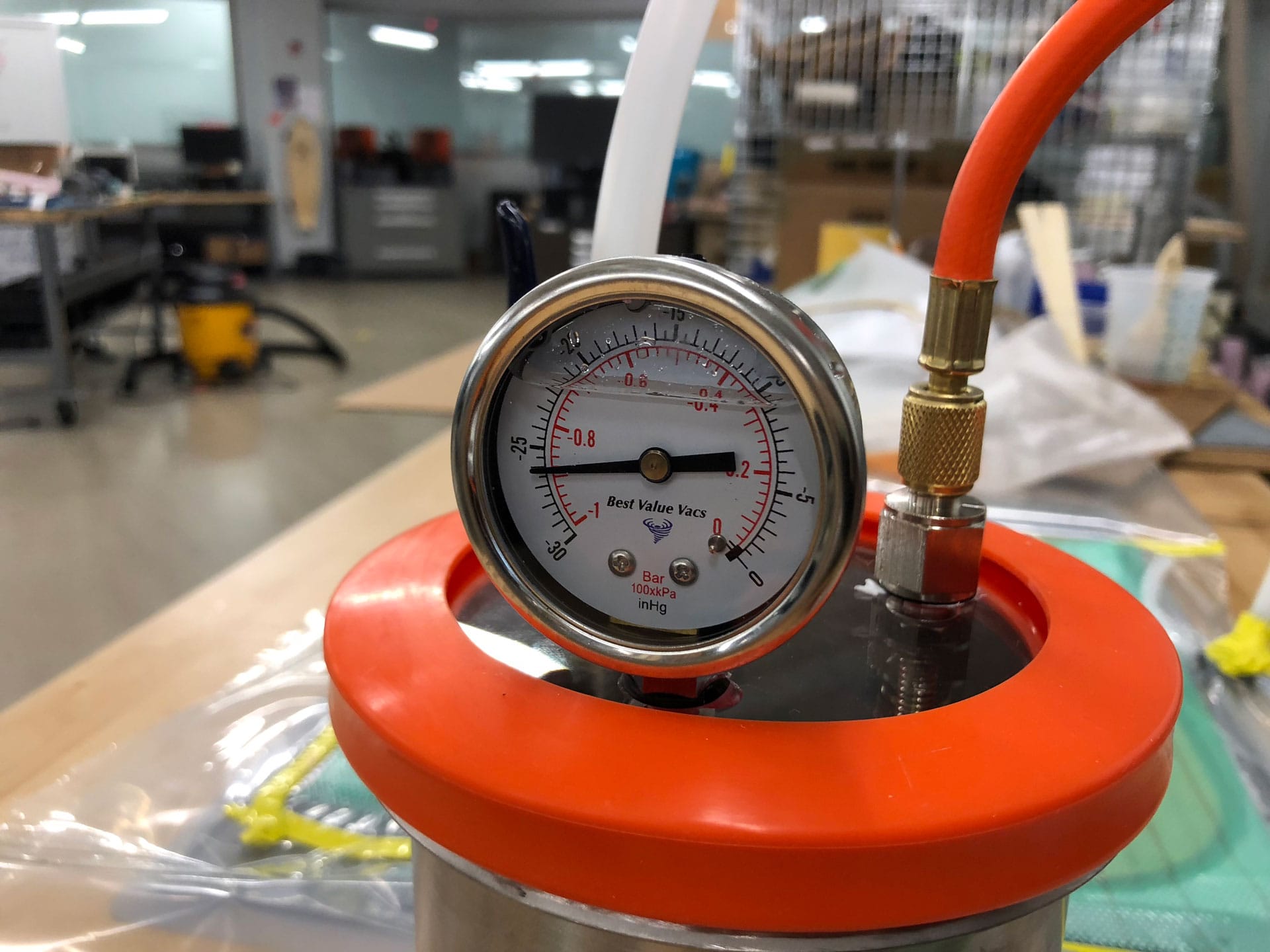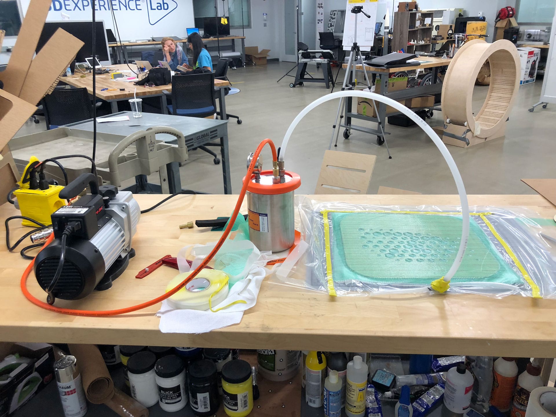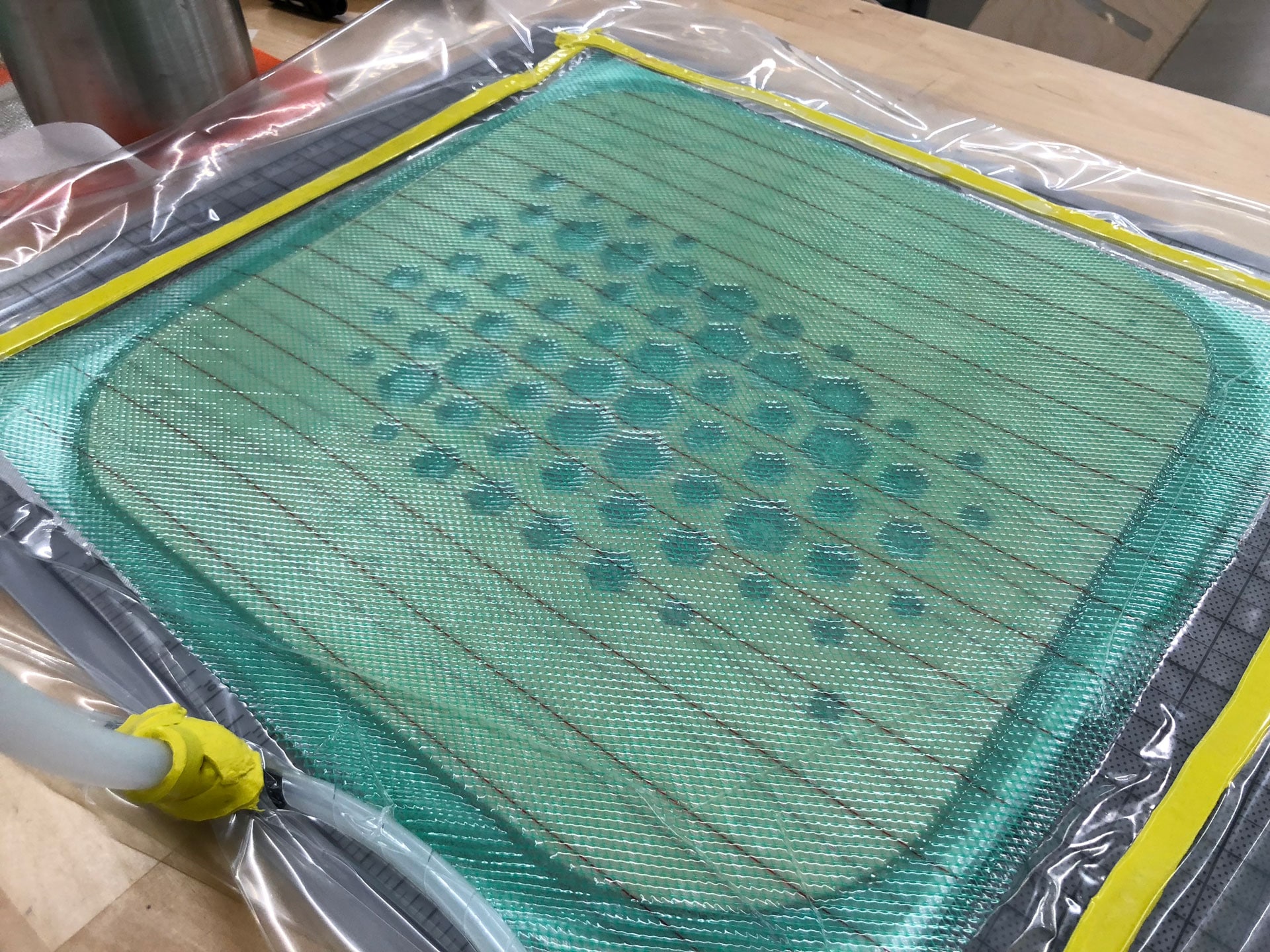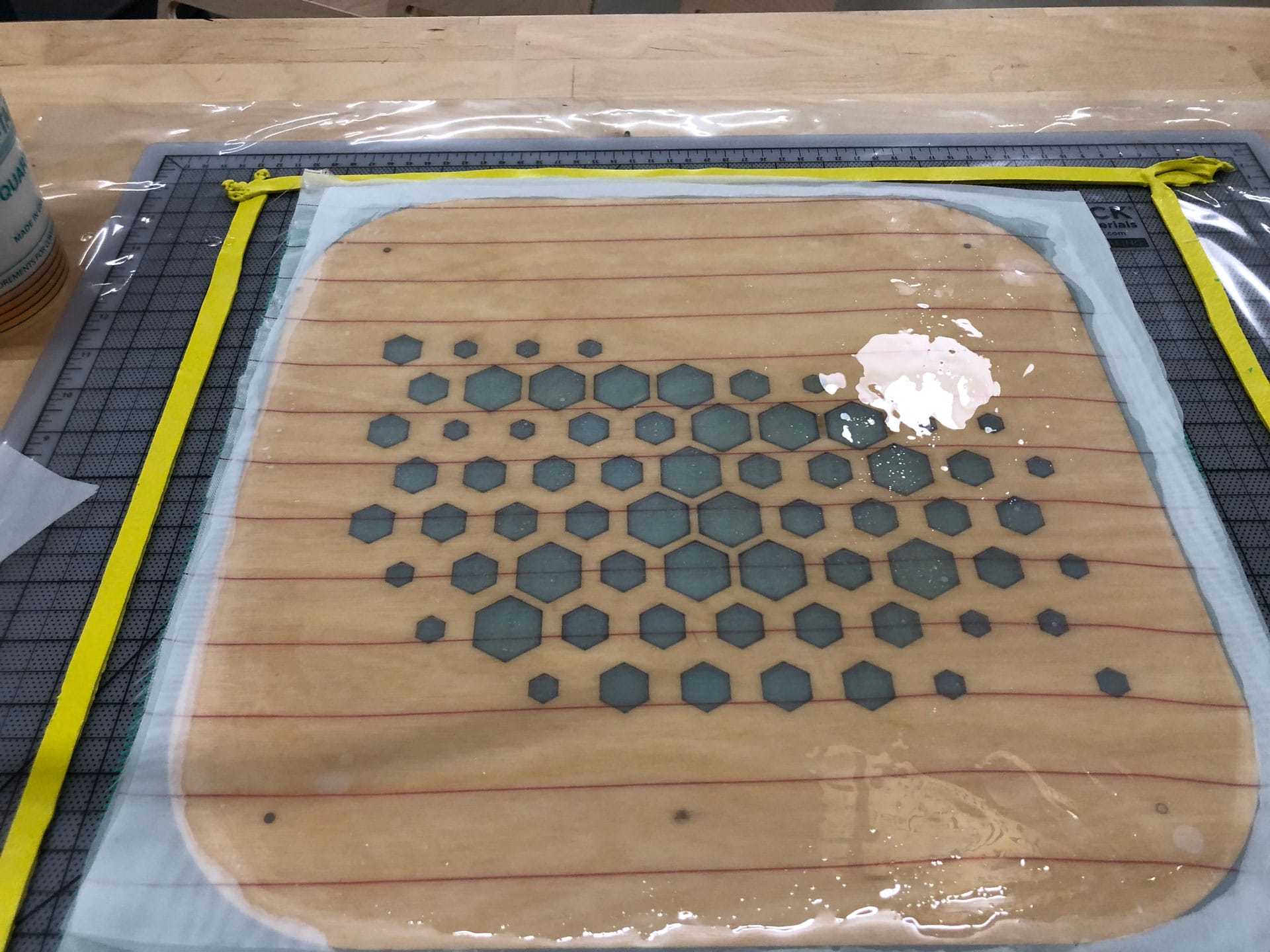 To create the composite, you need to create a mold, lay the layers on top of the mold with the resin and then vacuum seal all the pieces in a plastic bag and compact the layers by sucking out all the air from the bag.