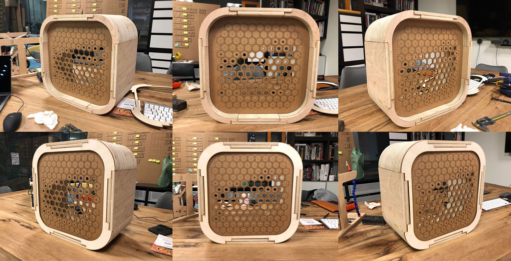 Pixie is designed so that each screen can snap on and off easily through a press fit connection. For my first screen, I created an interactive Halftone Screen. The Halftone Screen is based on the “halftone” technique in which changes in pixel size are used to create different tones and gradations thereby creating unique images.