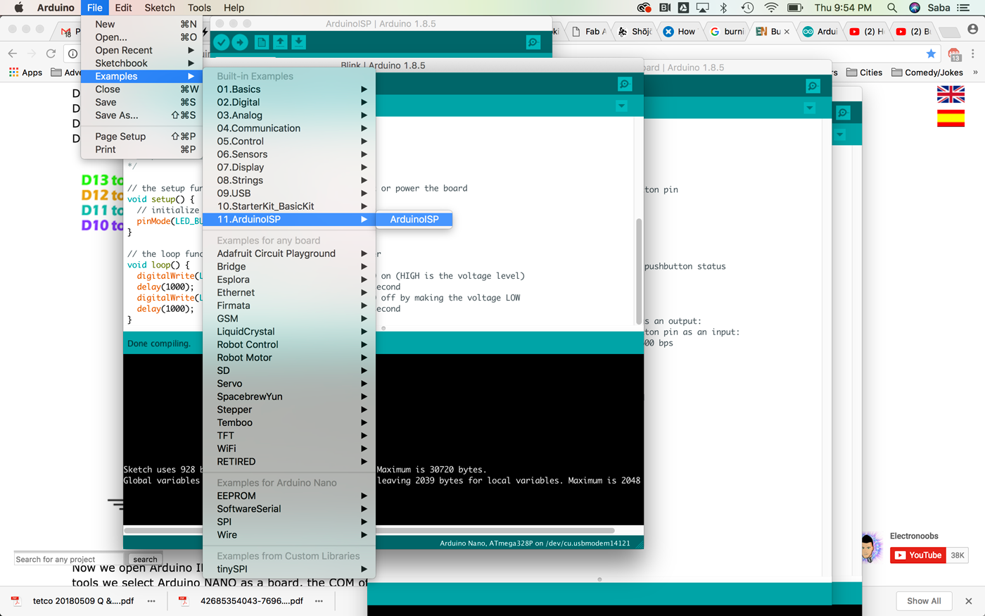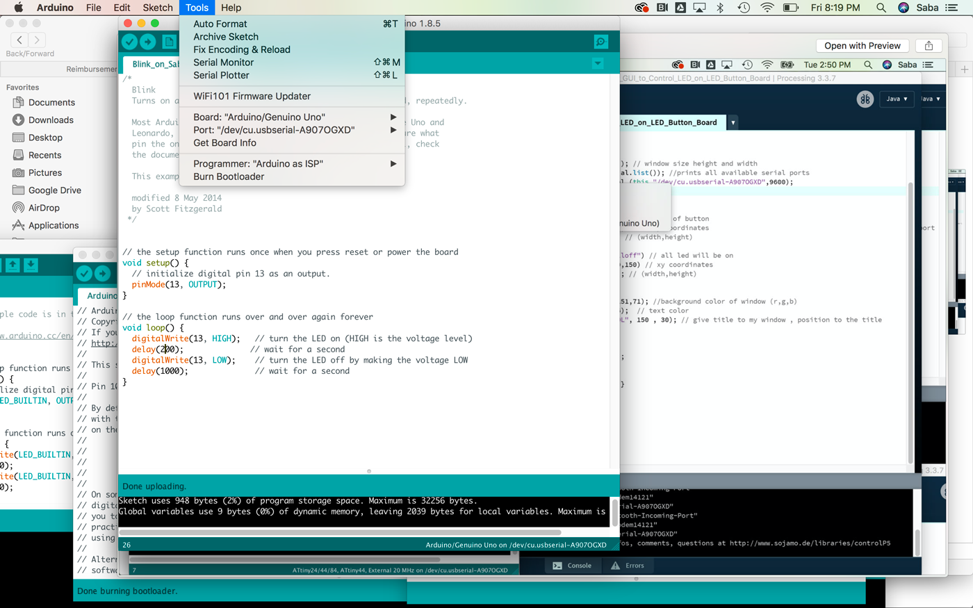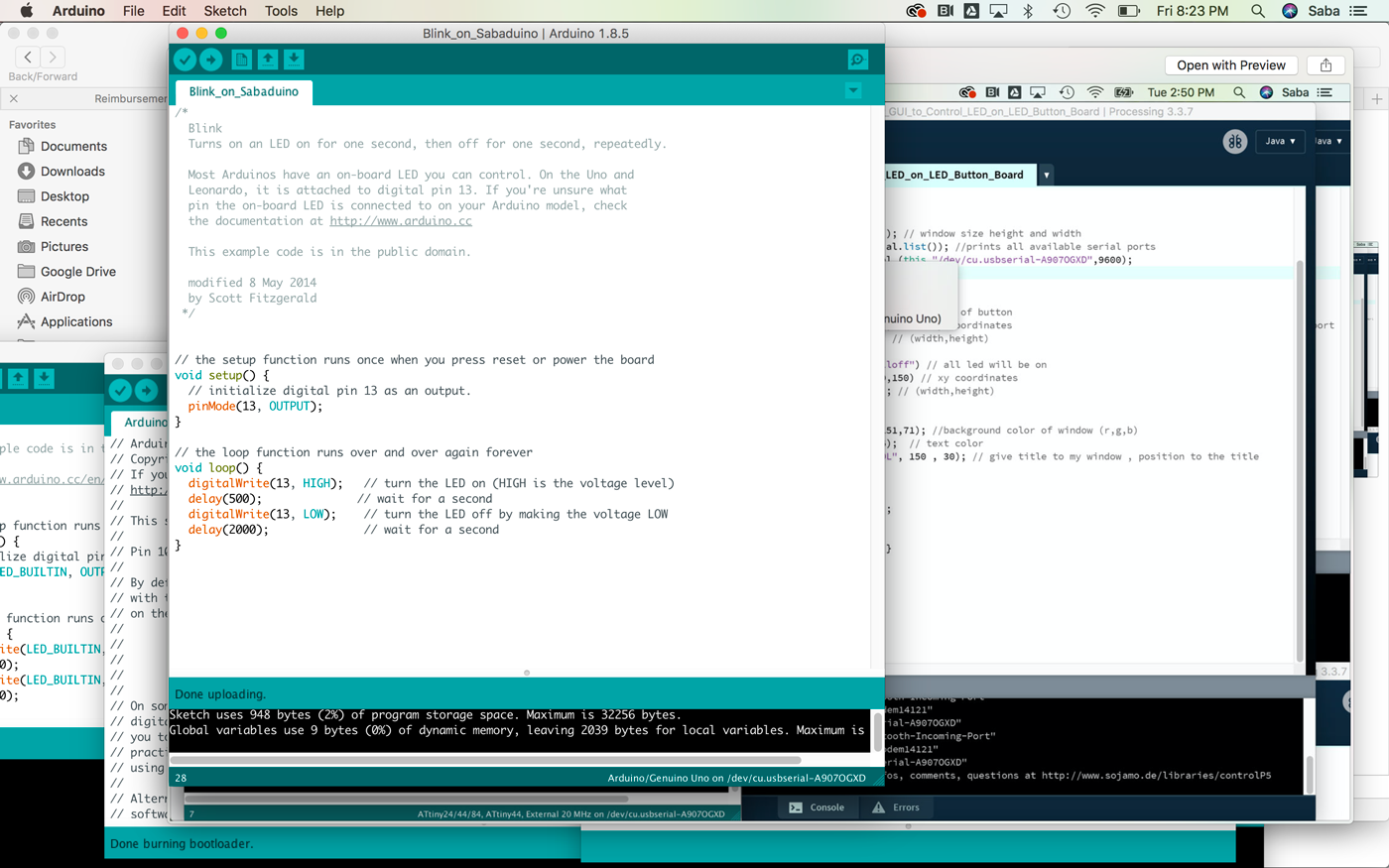 I then tested some basic blink code on my Sabaduino board, and it worked.