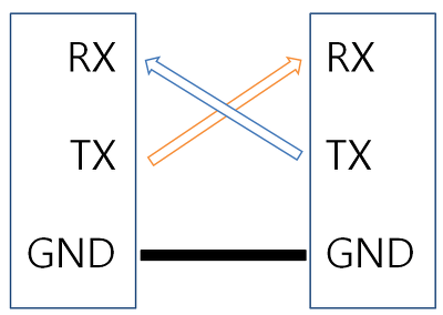 As the R and T in the acronym dictate, UARTs are responsible for both sending and receiving serial data. On the transmit side, a UART must create the data packet - appending sync and parity bits - and send that packet out the TX line with precise timing (according to the set baud rate). On the receive end, the UART has to sample the RX line at rates according to the expected baud rate, pick out the sync bits, and spit out the data. Here is the conection between the device.