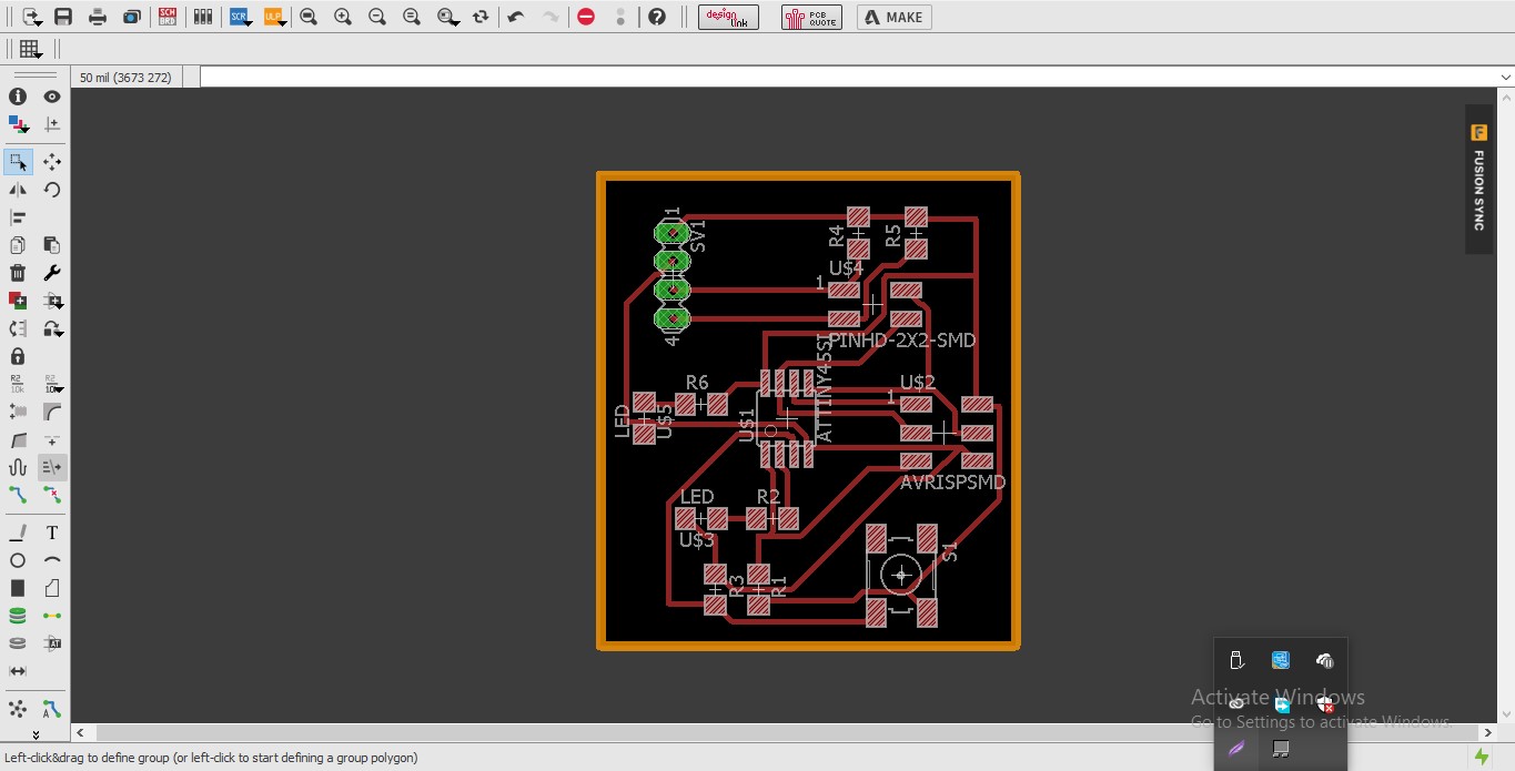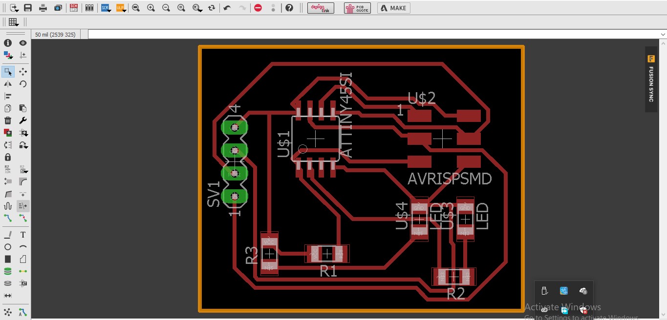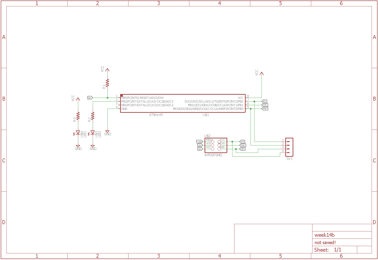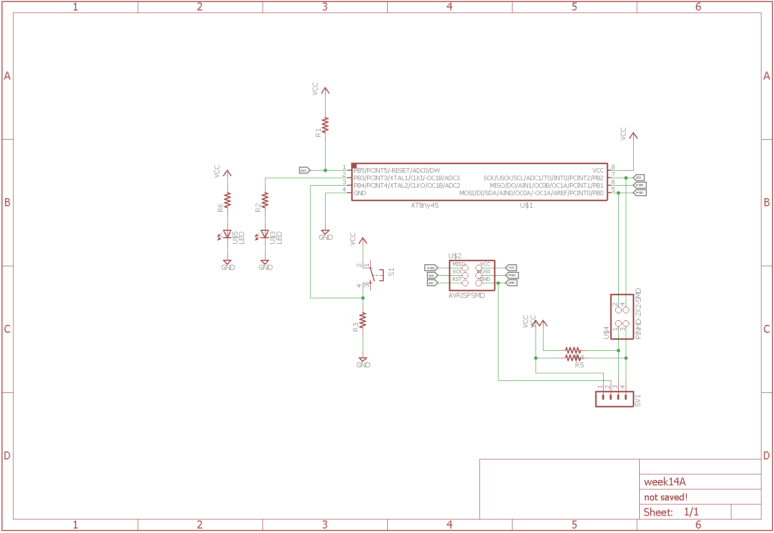 We got much infirmations about I2C. Now lets built some PCBs to communicate each other through I2C bus. I choosed Attiny45 as the microcontroller. First i need to design the Master board then design the slave board. The master board is consist of a Button and LED and slave board have a single LED only. So when i press the button on Master board, the LED on the slave board as well as LED on the master board will glow. SO that is my plan. Now let design the Boards and mill them.