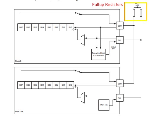 I used I2C communication before for interfacing some modules witrh arduino development boards. As i mentioned earlier, i choosed I2C communication to do the assignment this week. I would like to know more about I2C communication. So what is i2C communication? The Inter-integrated Circuit (I2C) Protocol is a protocol intended to allow multiple slave digital integrated circuits (chips) to communicate with one or more master chips. Like the Serial Peripheral Interface (SPI), it is only intended for short distance communications within a single device. Like Asynchronous Serial Interfaces (such as RS-232 or UARTs), it only requires two signal wires to exchange information. I2C requires a mere two wires, like asynchronous serial, but those two wires can support up to 1008 slave devices. Also, unlike SPI, I2C can support a multi-master system, allowing more than one master to communicate with all devices on the bus (although the master devices can’t talk to each other over the bus and must take turns using the bus lines).