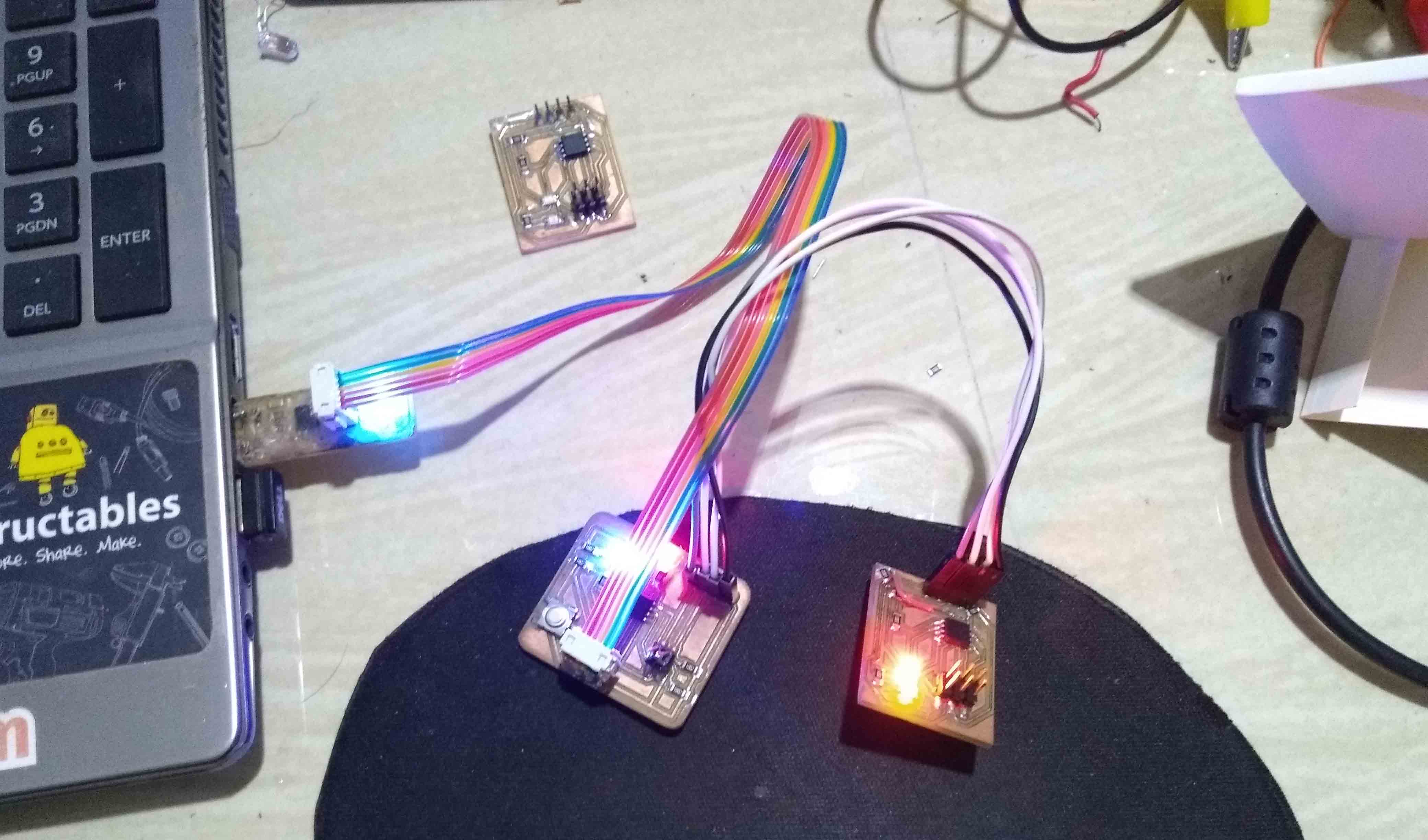 Now i need to program each of the boards. This is little complicated one because i need to do the three of the boards communicate properly. But while iam testing one of the slave board, i accidently removed the FabISP programmer while the code was uploading. Now i cant program the board. But for now i go with the other slave and master boards and i should troubleshoot the board and recover it later.