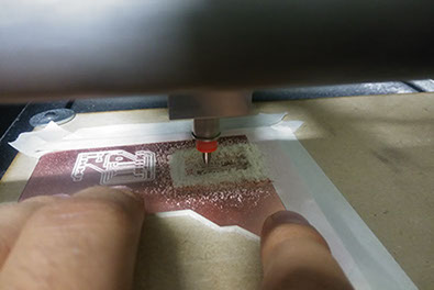I prepared a copper PC board, setted the parameters and started cutting, I then soldered all the components and tested for shorts.