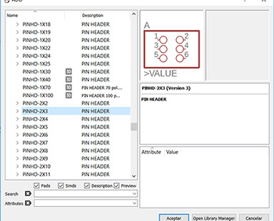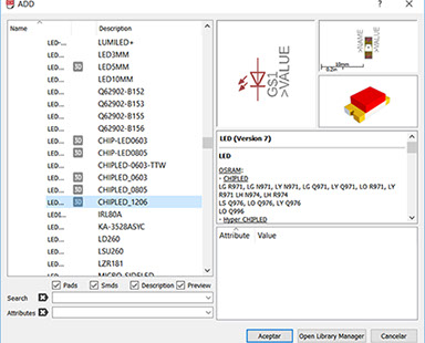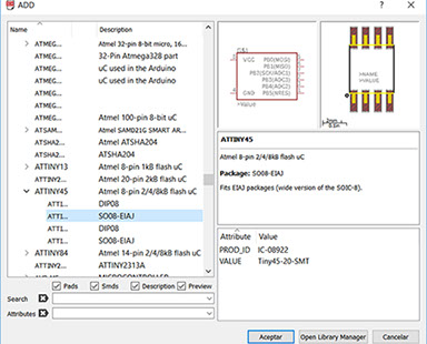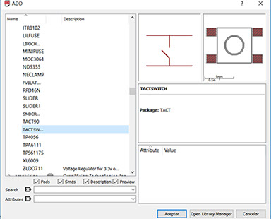 I created a new project, and from there a new schematic, I imported two libraries from my Fab Guru so I had the electronic components we have in the FabLab.