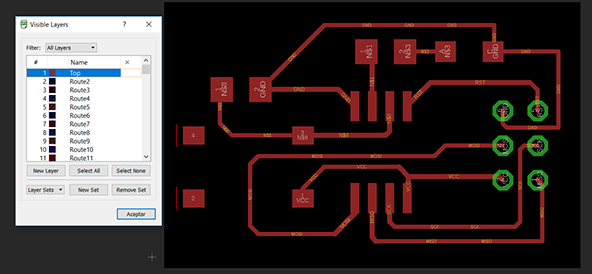 I then generated a board and followed the paths to make all the conections, tested the circuit for conection errors and ended with something like the first image.