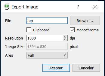 After, I hided all the layers but top and pads, exported the file as an image, selected Monochrome and maximum resolution and ended with a PNG ready tu cutt.