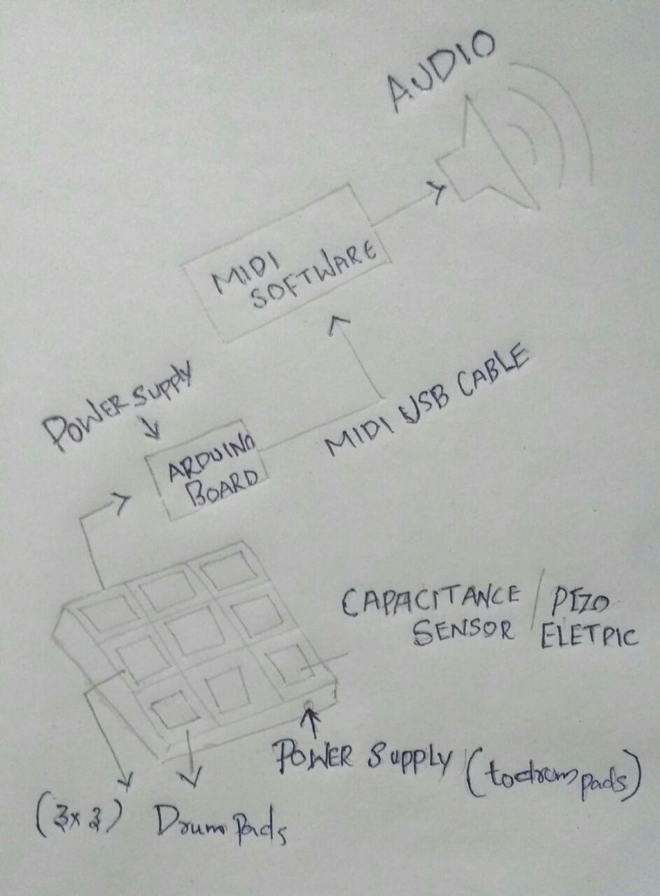 My idea is to make a box like thing with plywood and it have 3rows and 3 columns in each columns are with capacitive sensor and fillind with perticular beat sound when we touch to each of these shells The beat will comes out through the speaker