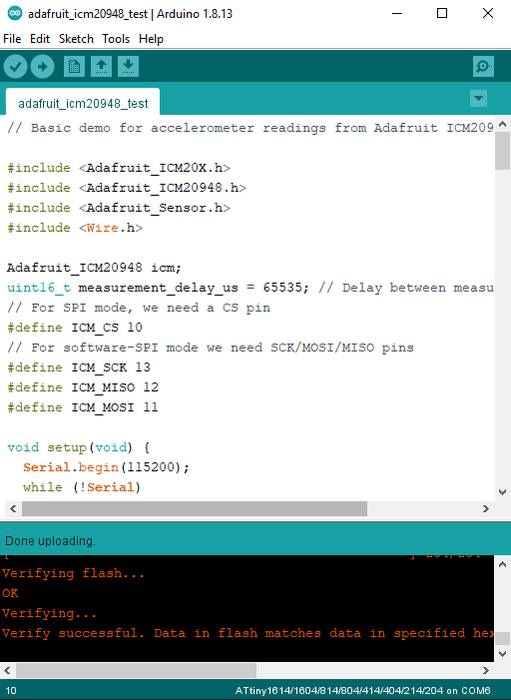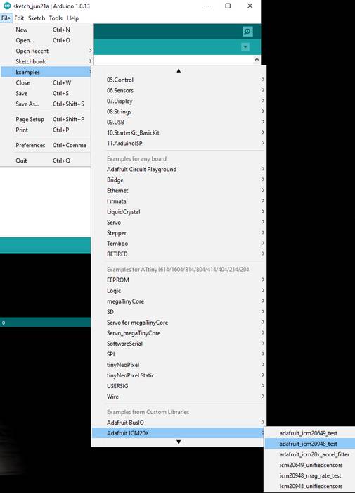 The library includes a test program which is located in File->Examples->Adafruit ICM20X->adafruit_icm20948_test