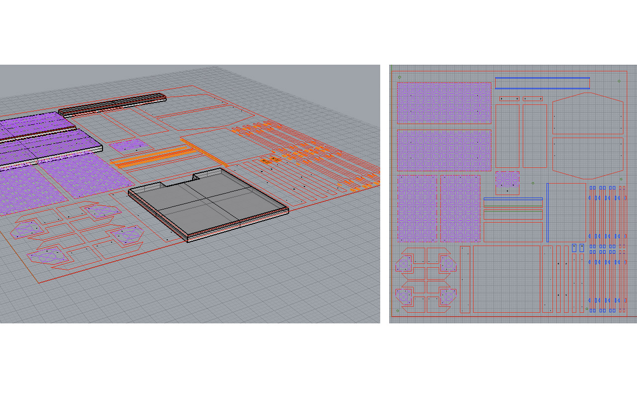 The engraved pattern that you can see on the outside of the hive is the OpenStructures grid. The entire hive design adheres to this grid.