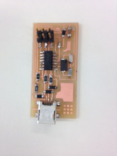 It is was not very easy to find tutorials about making a board with iModela. Of course an additional difficulty is the fact that I am a Mac user while iModela software is running on Windows. Finally I used the Modela milling machine with fabmodules cam software. I found it straightforward to produce the boards. Since I have some experience in soldering (through hole components though...) luckily I did not find it very hards to solder the surface mount components. The produced board appeared to have no production mistakes.
