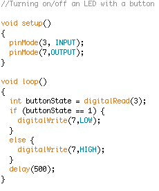 The code I wrote is straight forward. My goal was to create the simplest program to verify that my produced boards were working. The documented example below detects if the button is pressed and turns on an LED. In this attempt I used the board from the assignment 6: Electronic Design.