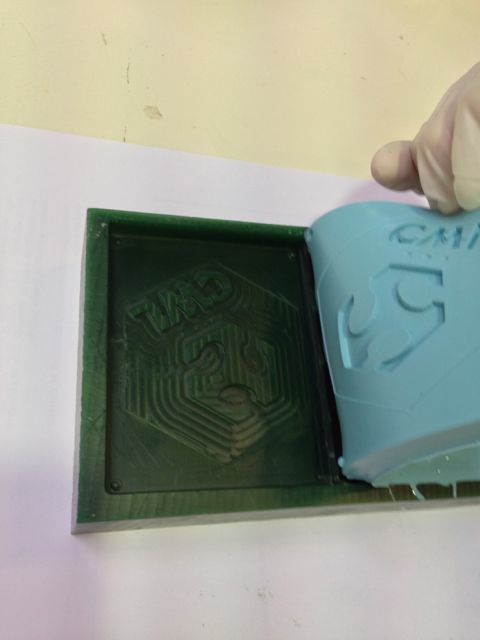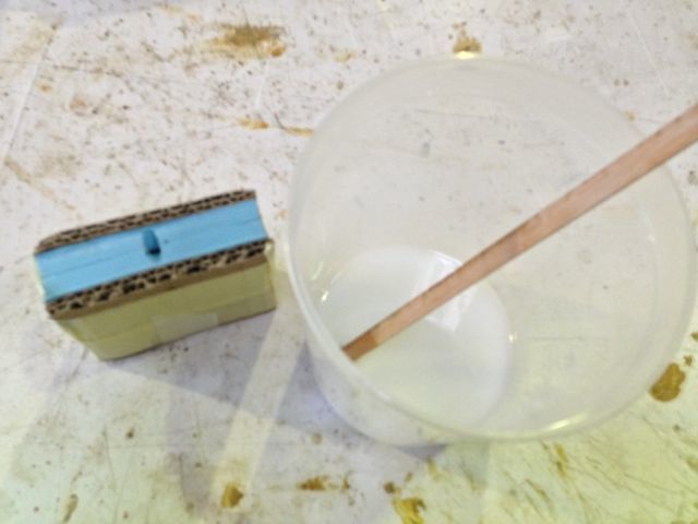 Step3: Pour in the silicon into the wax mold. I used the oomoo from Smooth-on which comes in two parts. Information from their website as well as a video from http://www.paintandpowderstore.com was helpful for me to get the information I needed.