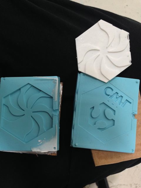 -- the channels that are needed to be created for pouring plastic and for the air will need to be bigger. Also, check they are all united in the Rhino drawing before milling the wax