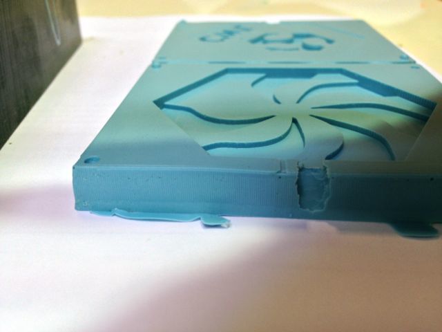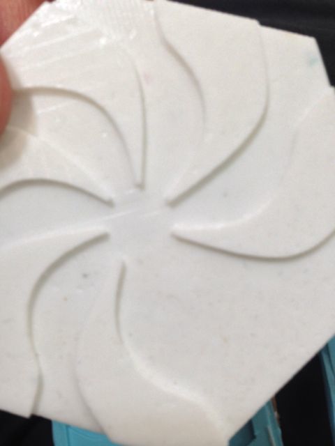 -- It is better to have some plastic spilling out of the hole than not having enough. In my case one of the sides of the tile was not well finished. I had to make a second cast to make sure the plastic would fill the mold completely.