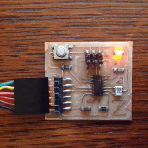 The assignment for this week is to read a microcontroller data sheet and program our board to do something, with as many different programming languages and programming environments as possible. Our "board" refers to the hello.ftdi.44.echo circuit board that we created two weeks ago as part of the electronics design assignment. The original hello.ftdi.44.echo circuit board has an ATtiny44a and a FTDI USB to serial interface. I modified the design to make a circuit board with these features plus a pushbutton input and an LED output. When I made the board two weeks ago, I tested the FTDI interface echo function. However, I did not test the pushbutton or LED functions so I am not positive that they both work.