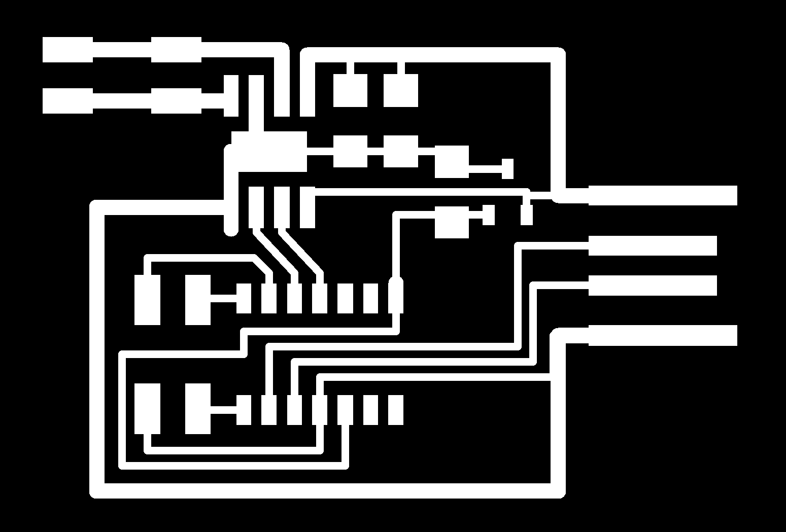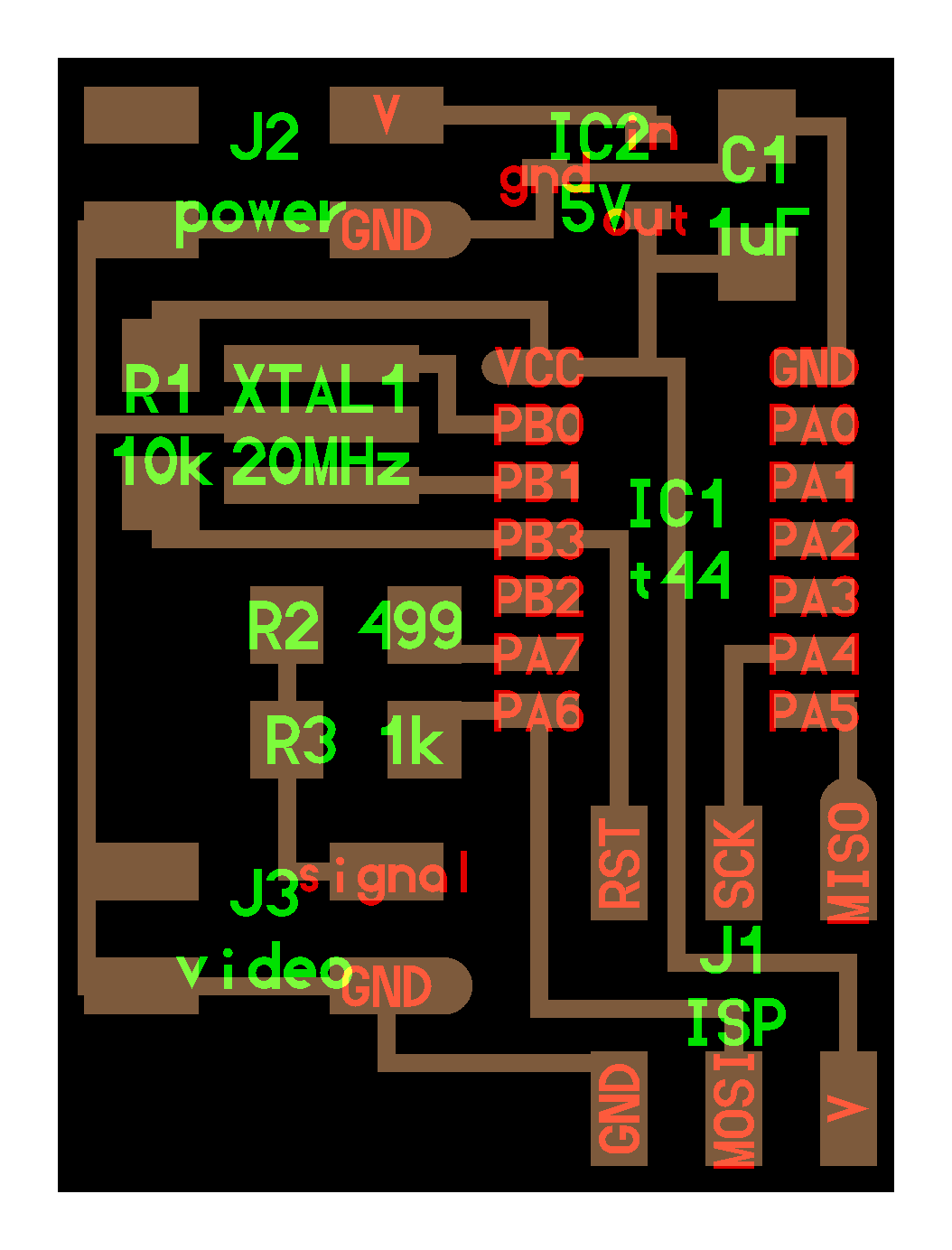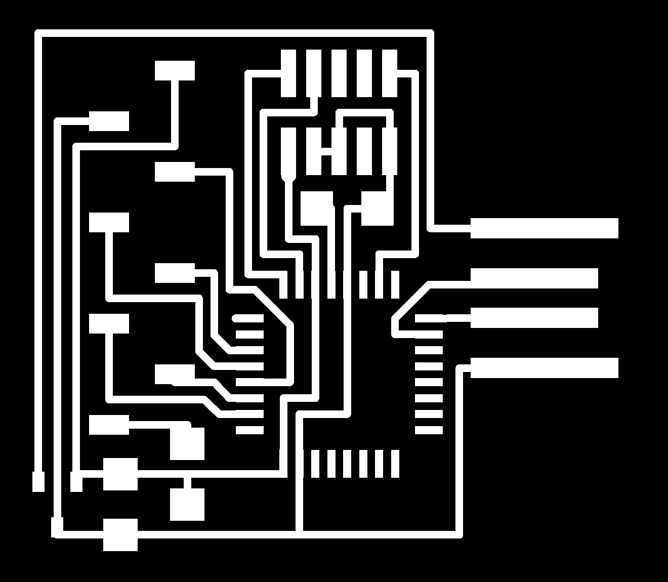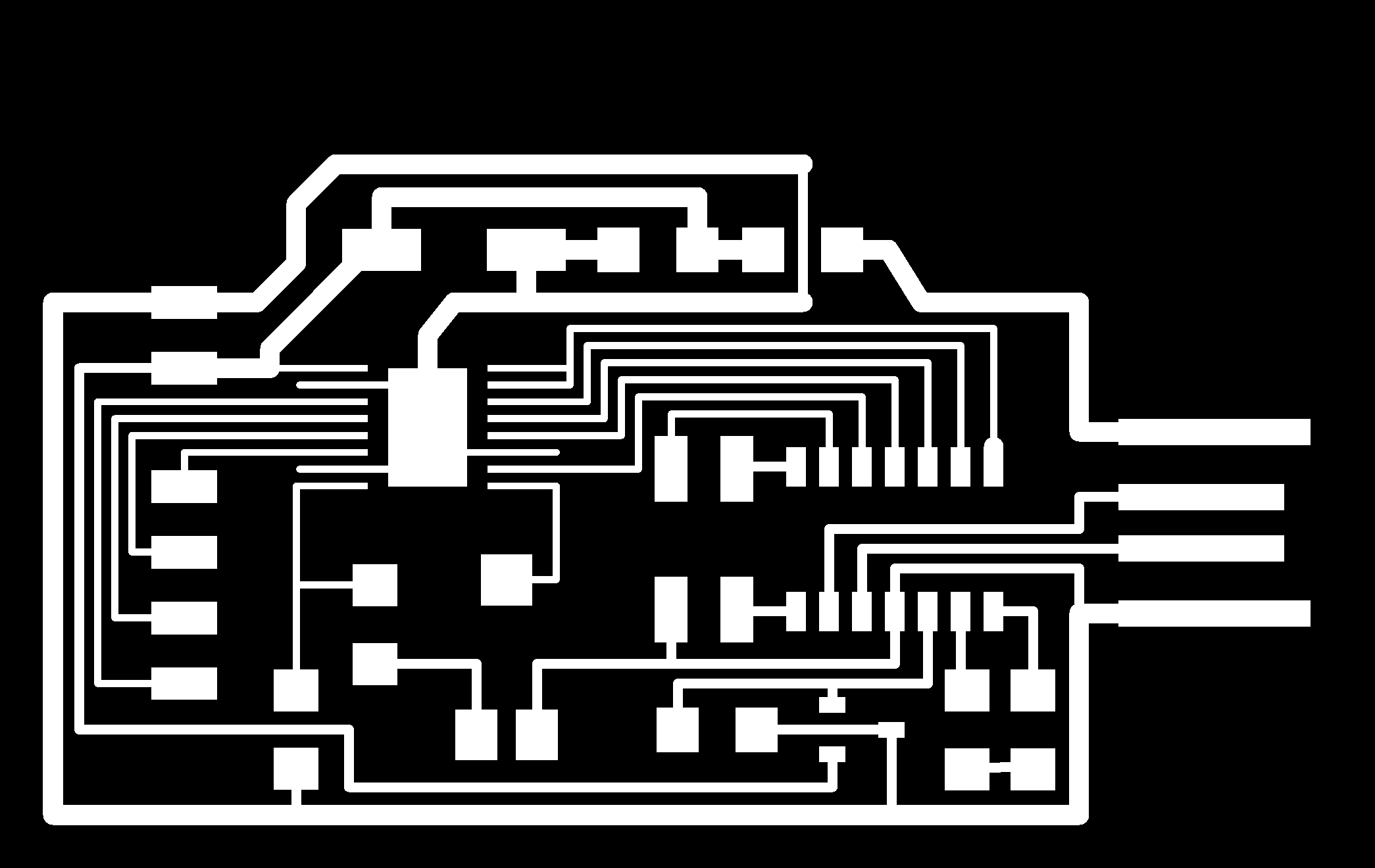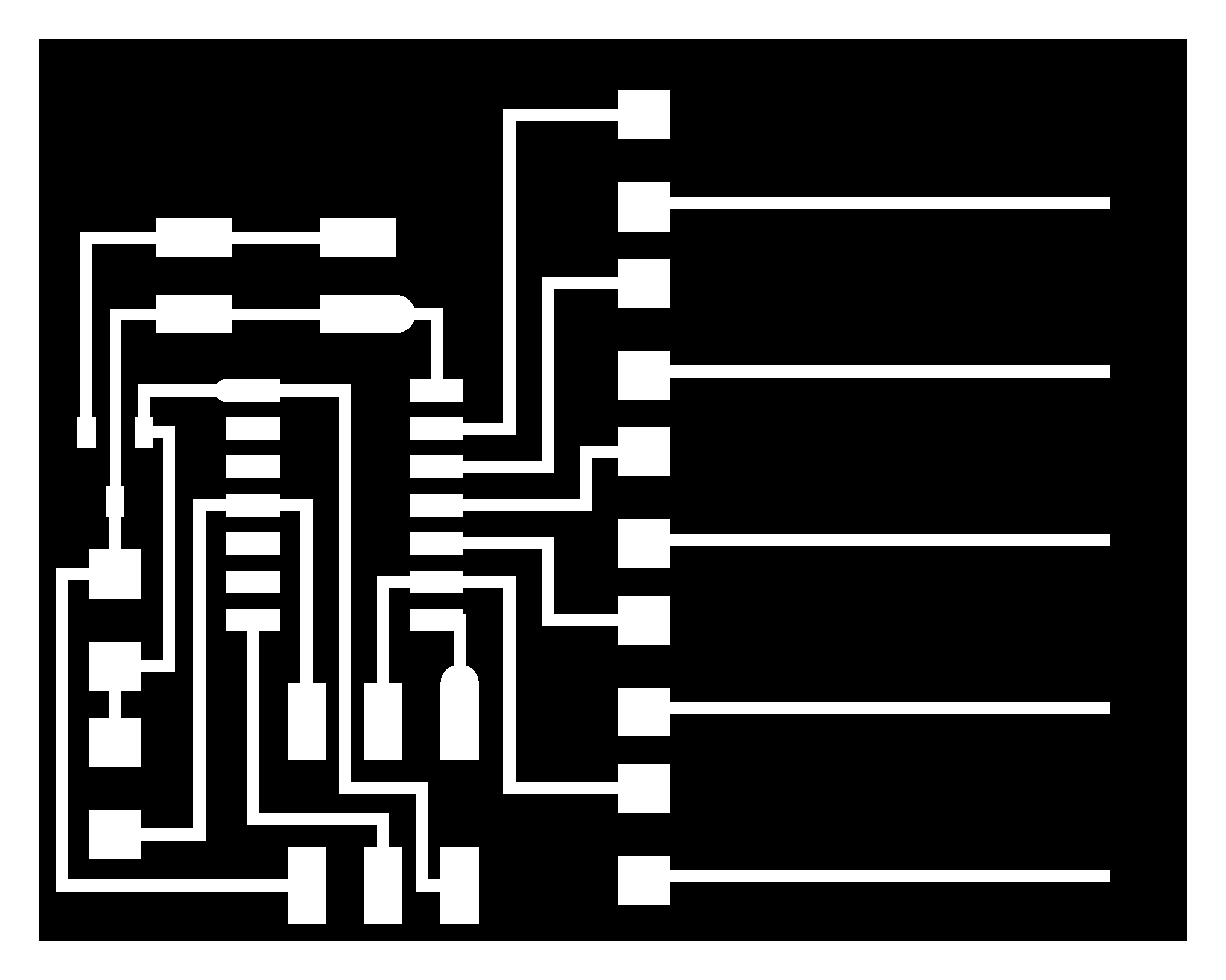 electrical safety ~1 mA: OK ~10 mA: shock, contraction ~100 mA: fibrillation body: M ohm external, k ohm internal dielectric breakdown: ~kV/mm supply capacitors inductive flyback polarity protection diode, MOSFET level shift MOSFET connector polarization, orientation circuit protection power wire gauge USB charger hub battery module meter power supply bench switching, linear, regulated supercapacitor LiPo battery charge controller storage wireless current measurement in-line meter supply regulation sense resistor magnetic field inductance LED current limiting hello.button-blink.C3 board components traces interior hello.button-blink.C3.ino hello.button-blink.C3.py video PWM hello.fade.C3.py video Charlieplexing hello.array.44 board components traces traces+exterior interior C makefile video hello.array.44.2 board components bottom vias top top+exterior interior C makefile video RGB LED pixels lights wires NeoPixel/WS2812B/SK6812 hello.WS2812B board components top interior hello.WS2812B.RP2040.py video Arduino Micropython library 3 in 1 hello.RGB.45 board components traces traces+exterior interior C makefile video LEDs diode drop, series-parallel MOSFET N, P, N floating gates, gate resistors dissipation, Rds, switching BJT, BiCMOS, IGBT hello.LEDs.t412 board components traces traces+exterior interior hello.LEDs.t412.ino video thermal runaway eye safety displays LCD HD44780 library hello.LCD.44 board components traces traces+exterior interior C makefile video I2C PCF8574 library hello.I2C.t1614 hello.LCD.I2C.ino video OLED SSD1306 hello.SSD1306.RP2040 board components top holes interior hello.SSD1306.RP2040.py ssd1306.py video library scripts hello.SSD1306.45 board components traces traces+exterior interior C makefile video TFT ILI9341 library hello.ILI9341.SW.D21E board components traces traces+exterior interior video hello.ILI9341.HW.D21E board components top top+exterior bottom holes interior video ST7735 video E Ink modules video RS170, NTSC, PAL, SECAM, VGA 75 ohm impedance hello.video.44 board components traces traces+exterior interior C makefile video SPI TVout thinner client color DC motor H-bridge TB67H451AFNG,EL TB67H453FNG(O,EL) hello.TB67H451.RP2040 board components top interior hello.TB67H451.RP2040.ino hello.TB67H451.RP2040.py boot.py video hello.H-bridge.D11C board components traces traces+exterior interior hello.H-bridge.D11C.ino video A4950 hello.H-bridge.44 board components traces traces+exterior interior C makefile video Dual H-bridge DRV8847 torque, power, efficiency, gearing vibration heat speaker MP3 module library hello.DFR0299.RP2040 pro sch pcb board components top holes interior hello.DFR0299.ino video I2S MAX98357A library module hello.MAX98357A.RP2040 board components top holes interior hello.MAX98357A.RP2040.ino video PWM class D, library hello.TB67H451.RP2040.audio.ino hello.TB67H451.RP2040.audio.py boot.py video hello.TB67H451.RP2040.wave.py sample.py hello.py convert_byterray.py video hello.TB67H451.RP2040.wave.ino sample.ino sample.main.ino convert.py video hello.speaker.D11C board components traces traces+exterior interior hello.speaker.D11C.ino hello.speaker-registers.D11C.ino video solenoid servo motor 50 Hz ~1-2 ms PWM (dis)continuous rotation ATtiny412 hello.servo.t412 board components traces traces+exterior interior hello.servo.t412.ino hello.servo-registers.t412.ino video ATSAMD11C hello.servo-D11C board components traces traces+exterior interior hello.servo-registers.D11C.ino video ATtiny44 hello.servo.44 board components traces traces+exterior interior ZLDO1117 hello.servo.44.1 board components traces traces+exterior interior LM2940 C (hardware PWM) makefile C (two-channel, software PWM) makefile video brushless DC motor (BLDC) efficiency, density, reliability, noise inrunner, outrunner, pancake, fan, gimbal Kv (RPM/V) phases/rotation (6 typical) drive waveform open-loop, closed-loop control back EMF (BEMF) sensing ~1 (fan), 10 (drone), 100 (skateboard), 1000 (car) A,$ triple half-bridge A4949 hello.A4949.RP2040 board components top interior hello.A4949.RP2040.py video electronic speed controller (ESC) hello.ESC.44 board components traces traces+exterior interior C makefile video firmware servo PWM power input, output initialization, calibration stepper motor types wire identification step size (1.8 degrees typical) full, half, microstepping current, duration field oriented control step and direction DRV8428 hello.DRV8428-D11C board components traces traces+exterior holes interior hello.DRV8428-D11C.ino video hello.DRV8428-D11C-NEMA17 board components traces traces+exterior holes interior code video H-bridge DRV8251ADDAR hello.DRV8251A.RP2040 pro sch pcb board components traces interior hello.DRV8251A.RP2040.stepper.ino video TB67H451AFNG,EL hello.stepper.bipolar.D11C board components top top+exterior bottom holes interior hello.stepper.bipolar.D11C.ino video driver electro-permanent electrostatic motor control Allegro TI Trinamic Pololu motion control solid state relay AC vs DC IC hockey puck wiring voltage drop: ~V safety: switch hot side US: black (red,blue) = hot, white = neutral, green(-yellow) = ground EU: brown (black,gray) = hot, blue = neutral, green-yellow = ground switched outlet shape memory piezo polymer artificial muscle fishing line conducting thread actuator LCE soft inflatable pneumatics hydraulics Lingdong group assignment: • measure the power consumption of an output device individual assignment: • add an output device to a microcontroller board you've designed, and program it to do something