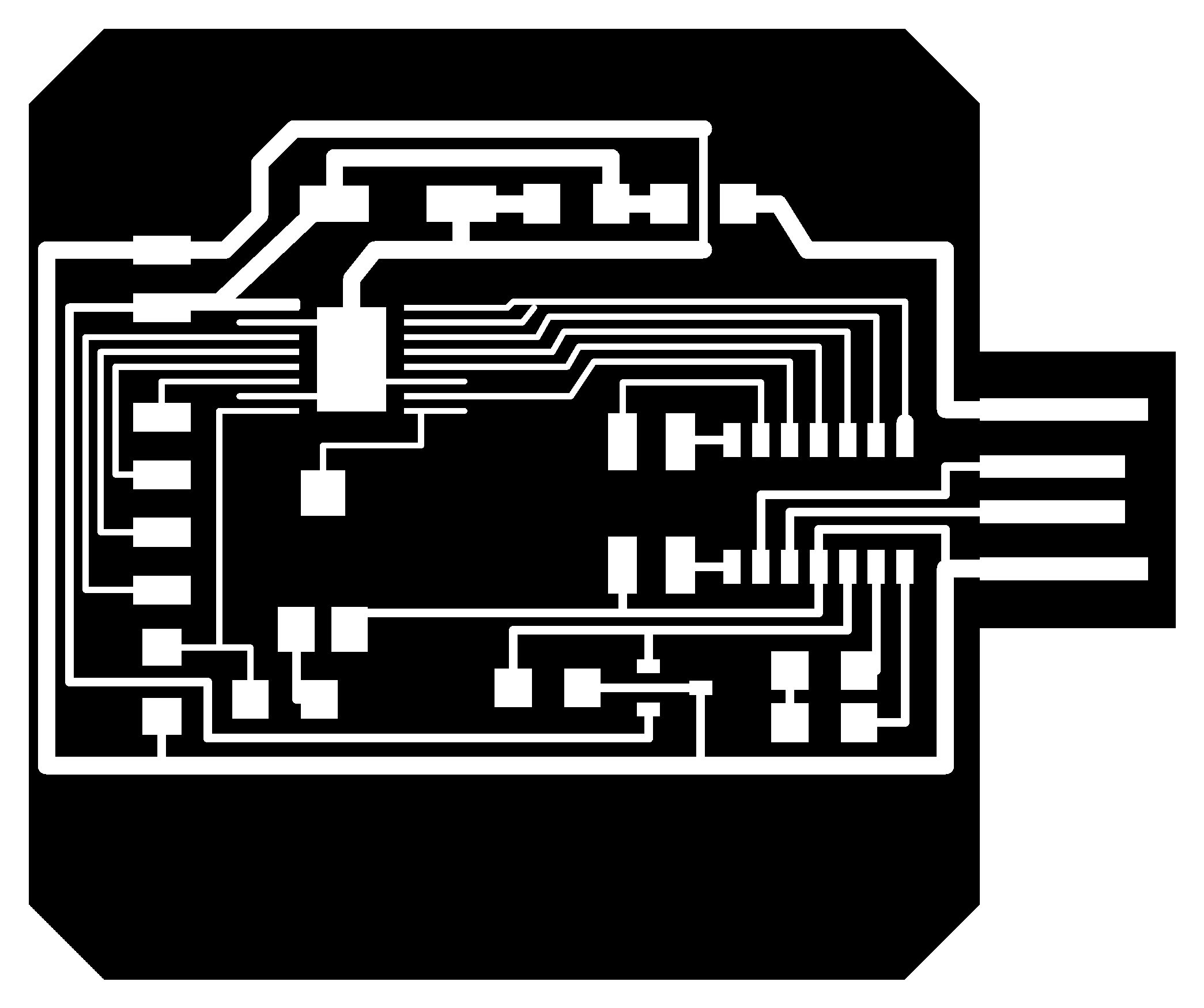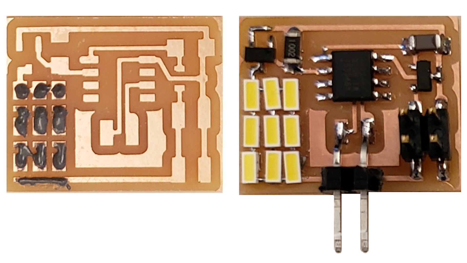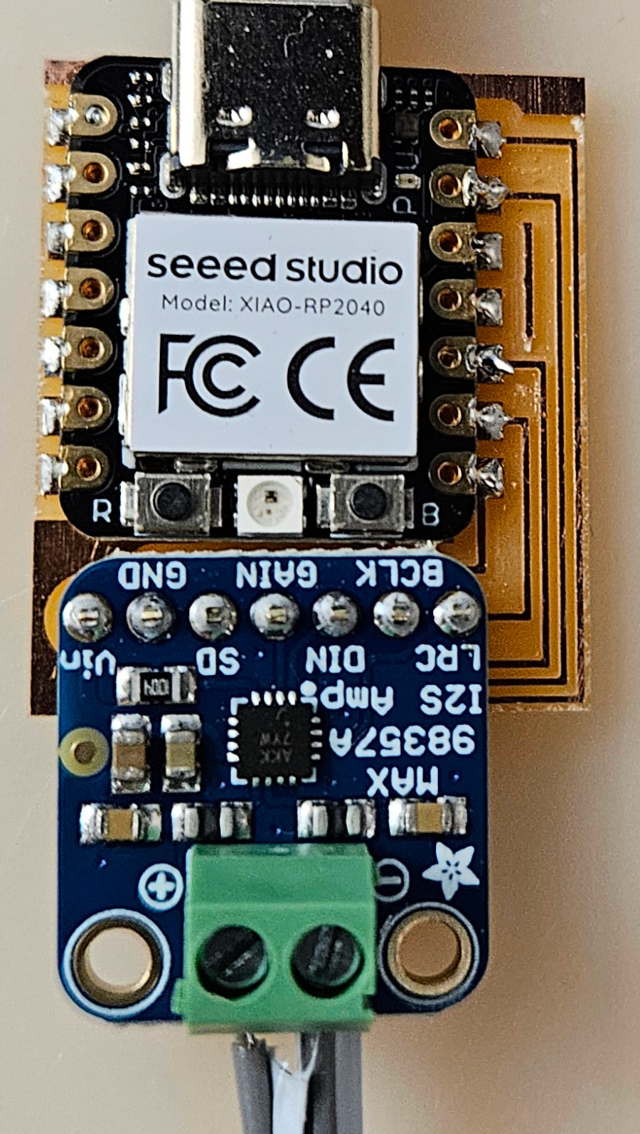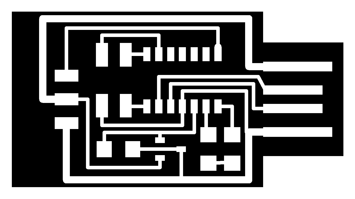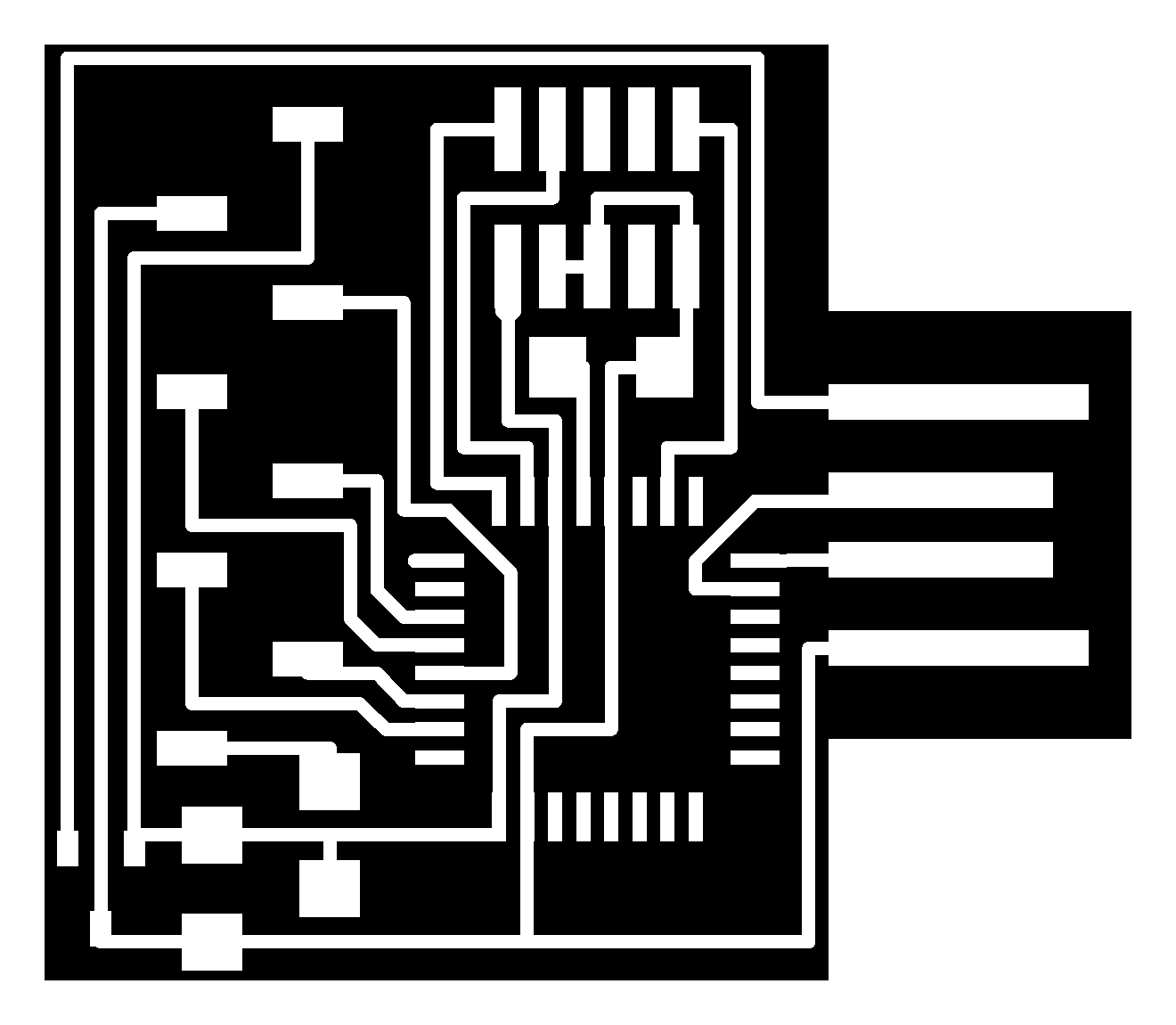 electrical safety ~1 mA: OK ~10 mA: shock, contraction ~100 mA: fibrillation body: M ohm external, k ohm internal dielectric breakdown: ~kV/mm supply capacitors inductive flyback polarity protection diode, MOSFET level shift MOSFET connector polarization, orientation circuit protection power wire gauge USB charger hub battery module meter power supply bench switching, linear, regulated supercapacitor LiPo battery charge controller storage wireless current measurement in-line meter supply regulation sense resistor magnetic field inductance LED current limiting hello.button-blink.C3 board components traces interior hello.button-blink.C3.ino hello.button-blink.C3.py video PWM hello.fade.C3.py video Charlieplexing hello.array.44 board components traces traces+exterior interior C makefile video hello.array.44.2 board components bottom vias top top+exterior interior C makefile video RGB LED pixels lights wires NeoPixel/WS2812B/SK6812 hello.WS2812B board components top interior hello.WS2812B.RP2040.py video Arduino Micropython library 3 in 1 hello.RGB.45 board components traces traces+exterior interior C makefile video LEDs diode drop, series-parallel MOSFET N, P, N floating gates, gate resistors dissipation, Rds, switching BJT, BiCMOS, IGBT hello.LEDs.t412 board components traces traces+exterior interior hello.LEDs.t412.ino video thermal runaway eye safety displays LCD HD44780 library hello.LCD.44 board components traces traces+exterior interior C makefile video I2C PCF8574 library hello.I2C.t1614 hello.LCD.I2C.ino video OLED SSD1306 hello.SSD1306.RP2040 board components top holes interior hello.SSD1306.RP2040.py ssd1306.py video library scripts hello.SSD1306.45 board components traces traces+exterior interior C makefile video TFT ILI9341 library hello.ILI9341.SW.D21E board components traces traces+exterior interior video hello.ILI9341.HW.D21E board components top top+exterior bottom holes interior video ST7735 video E Ink modules video RS170, NTSC, PAL, SECAM, VGA 75 ohm impedance hello.video.44 board components traces traces+exterior interior C makefile video SPI TVout thinner client color DC motor H-bridge TB67H451AFNG,EL TB67H453FNG(O,EL) hello.TB67H451.RP2040 board components top interior hello.TB67H451.RP2040.ino hello.TB67H451.RP2040.py boot.py video hello.H-bridge.D11C board components traces traces+exterior interior hello.H-bridge.D11C.ino video A4950 hello.H-bridge.44 board components traces traces+exterior interior C makefile video Dual H-bridge DRV8847 torque, power, efficiency, gearing vibration heat speaker MP3 module library hello.DFR0299.RP2040 pro sch pcb board components top holes interior hello.DFR0299.ino video I2S MAX98357A library module hello.MAX98357A.RP2040 board components top holes interior hello.MAX98357A.RP2040.ino video PWM class D, library hello.TB67H451.RP2040.audio.ino hello.TB67H451.RP2040.audio.py boot.py video hello.TB67H451.RP2040.wave.py sample.py hello.py convert_byterray.py video hello.TB67H451.RP2040.wave.ino sample.ino sample.main.ino convert.py video hello.speaker.D11C board components traces traces+exterior interior hello.speaker.D11C.ino hello.speaker-registers.D11C.ino video solenoid servo motor 50 Hz ~1-2 ms PWM (dis)continuous rotation ATtiny412 hello.servo.t412 board components traces traces+exterior interior hello.servo.t412.ino hello.servo-registers.t412.ino video ATSAMD11C hello.servo-D11C board components traces traces+exterior interior hello.servo-registers.D11C.ino video ATtiny44 hello.servo.44 board components traces traces+exterior interior ZLDO1117 hello.servo.44.1 board components traces traces+exterior interior LM2940 C (hardware PWM) makefile C (two-channel, software PWM) makefile video brushless DC motor (BLDC) efficiency, density, reliability, noise inrunner, outrunner, pancake, fan, gimbal Kv (RPM/V) phases/rotation (6 typical) drive waveform open-loop, closed-loop control back EMF (BEMF) sensing ~1 (fan), 10 (drone), 100 (skateboard), 1000 (car) A,$ triple half-bridge A4949 hello.A4949.RP2040 board components top interior hello.A4949.RP2040.py video electronic speed controller (ESC) hello.ESC.44 board components traces traces+exterior interior C makefile video firmware servo PWM power input, output initialization, calibration stepper motor types wire identification step size (1.8 degrees typical) full, half, microstepping current, duration field oriented control step and direction DRV8428 hello.DRV8428-D11C board components traces traces+exterior holes interior hello.DRV8428-D11C.ino video hello.DRV8428-D11C-NEMA17 board components traces traces+exterior holes interior code video H-bridge DRV8251ADDAR hello.DRV8251A.RP2040 pro sch pcb board components traces interior hello.DRV8251A.RP2040.stepper.ino video TB67H451AFNG,EL hello.stepper.bipolar.D11C board components top top+exterior bottom holes interior hello.stepper.bipolar.D11C.ino video driver electro-permanent electrostatic motor control Allegro TI Trinamic Pololu motion control solid state relay AC vs DC IC hockey puck wiring voltage drop: ~V safety: switch hot side US: black (red,blue) = hot, white = neutral, green(-yellow) = ground EU: brown (black,gray) = hot, blue = neutral, green-yellow = ground switched outlet shape memory piezo polymer artificial muscle fishing line conducting thread actuator LCE soft inflatable pneumatics hydraulics Lingdong group assignment: • measure the power consumption of an output device individual assignment: • add an output device to a microcontroller board you've designed, and program it to do something
