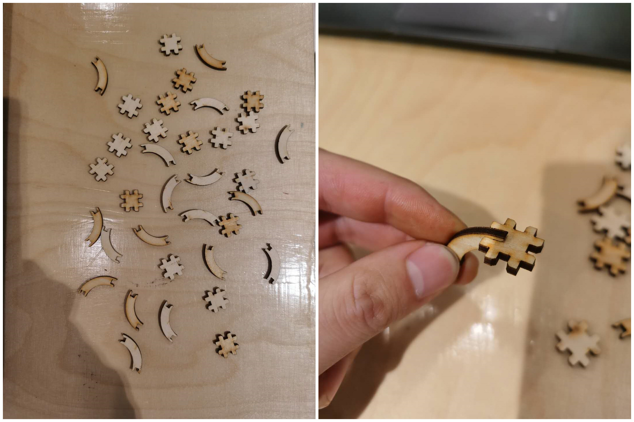 The join is very moderate, which means the kerf setting is right. These two pieces can be combined into a lot of different shapes.