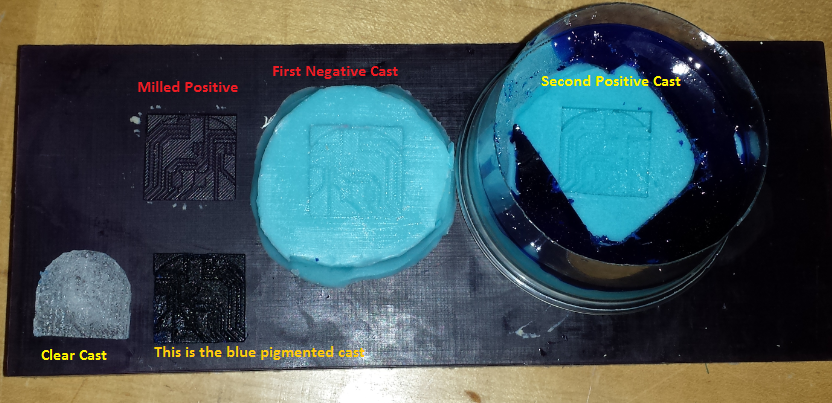 I then decided to play with some of the urethane materials I had in the lab to learn how to work with them some. I started with Smoothcast 365 which is an awesome product! It is practically clear in its natural form, very thin liquid so it fills in all the tiny details of the mold, and hardens in 10 minutes! I didn't notice any large amount of fumes or stink the mixture produced either. It was awesome to work with. I think these two products are "go to" products unless I need something else more specifically. Oh, and I forgot to mention SmoothCast 365 is designed to use pigments as well. I put an incredibly tiny amount of blue pigment in on my second cast of this stuff and I found out just how concentrated the pigment is...