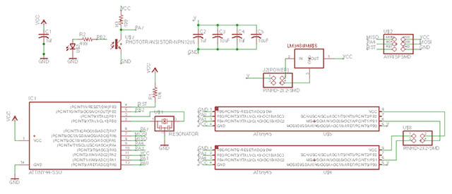 I’m going to make automatic window blind which interact with lights. I’m going to stepper motor to roll the window blind. I design the board which has a microcontroller ATtiny44, H bridges, photo-transistor