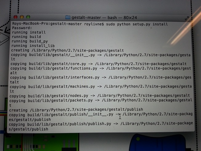 We followed the instructions and installed PySerial and the gestalt github code from here.