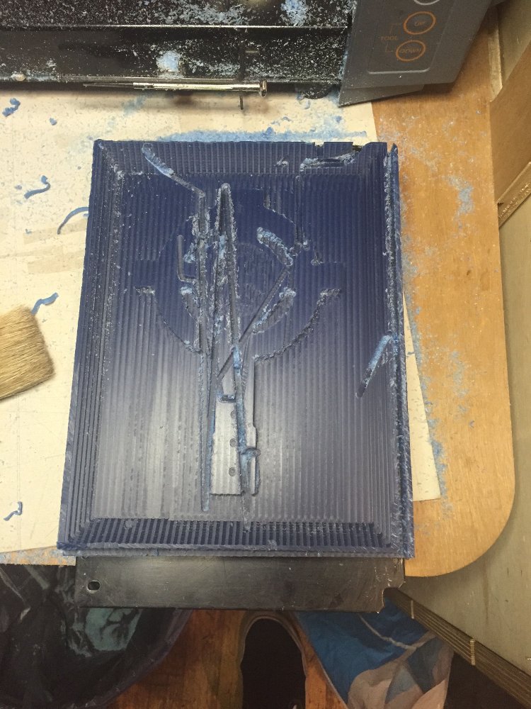 I ran this through the machine but for some reason the finishing job was offset in the x axis by about 2mm. Hardly noticable at a distance but much more obvious when close up: