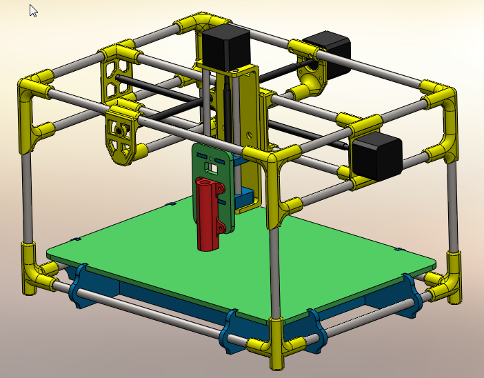 So thinking around the clock, I got inspired by the way pipe are liked together using various joints, I decided to work on the same 2D and 2&1/2D Milling mechine using basically the same principle, but this time less complicated and with fewer different parts.