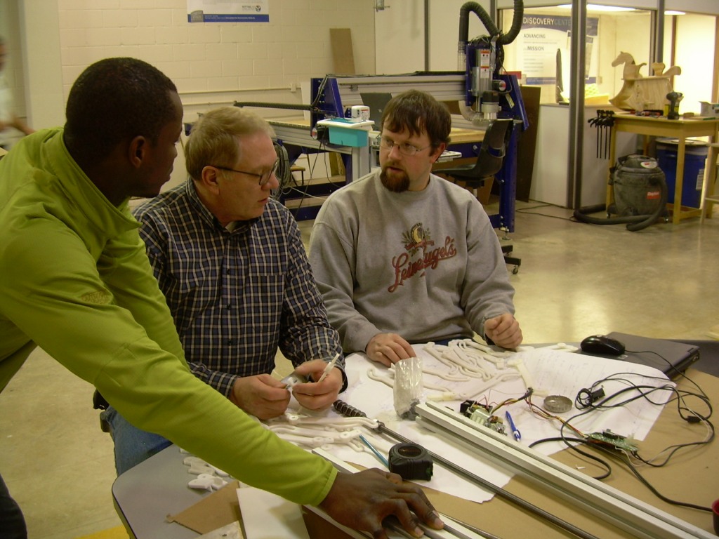 Who did what: Upon coming to a conclusion as to what to make. W divided the work among ourselves. Sylvia was to make 3D model of the bushings and print them.  Mike took the Challenge of 3D modeling some other parts of the machine and Plasma cut them. Scott was challenged to work on the Machine's X and Y frames (the Frame works). And I was assigned to make the electronic control system (stepper control system)