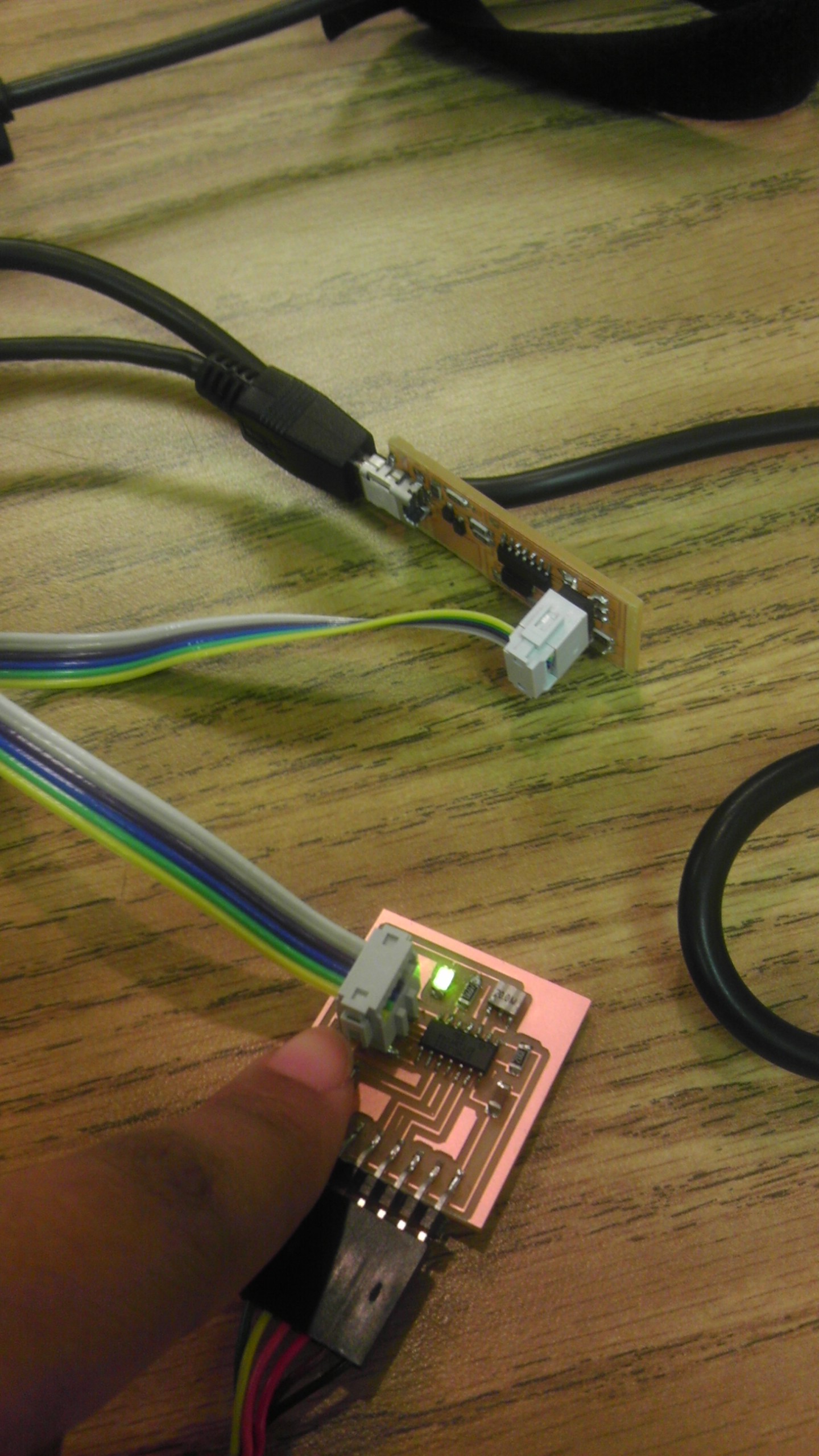 Below is an image of the FabISP and Hello-Echo Boards we assembled in previous assignments being connected by a FabIDC.