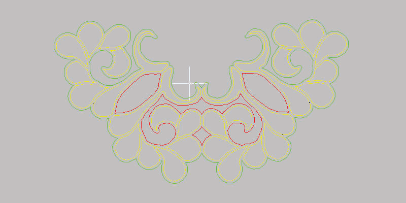 ~The different colors of the lines indicate the order of the cutting, the red lines are cut first because they’re the most interior, Then the yellow lines and finally the green lines that are the frame of shape.