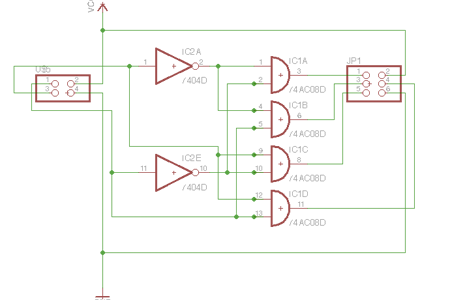 The 2 to 4 required four AND gates so I found the chip reference for 7408 and went to buy it thinking it would be readily available, but the electronics store in Barcelona did not have it in stock (at least not in SMD). I had to order it, but by the time they called me to tell me it had arrived I had moved in to the next project. As a result, I haven't tested if my schematic works or not yet... Hopefully will have time to solder the board before the end of term.