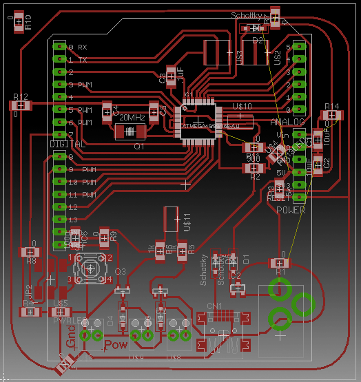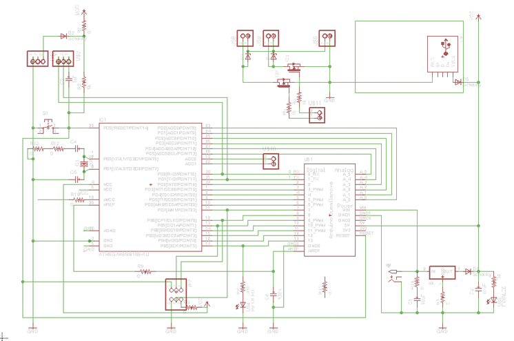I chose to base my ...duino design on a mix of Luciano's Barduino and a Arduino schematic that I had Googled up. On that base, I decided to add:
